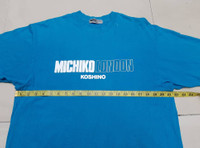 Very nice t shirt of iconic michiko koshino london t shirt Made in japan Size on tag mention L Measurement: Armpit to armpit 21. 5Inches Length 29 Inches Pls see pics of measurements. Item in good used condition. Got 1 pinhole no stain foreseen. Pls Refer photo for details Use Fedex Express for shipping. Receiving in 4 -8 working days. Payment using paypal only. Enjoy your fashion style. Thanks