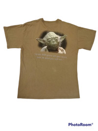 Very cute & cool artful jedi star wars movie t shirt. Good used condition. No holes & stains foreseen (please see pics highlighted). Print condition is very good tho.. pls see pics. Measurements laying flat in inches: Chest 21 in Length 28 in Shoulders 19.5in Sleeve Length 7 in Hem 21.5-+ in Open for negotiation and offer.. No worries Shipped via expedited/express shipping. Receiving the item within 5-8 business days depends on countries. Pls provide phone number for shipping purpose. Sold as is Thank you for your interest Have a nice day ahead