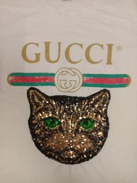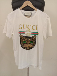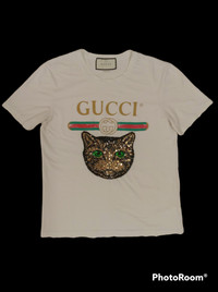 Very nice t shirt of iconic gucci mystical cat Awesome design. Measurement: Armpit to armpit 19- + Inches Length 25-+ Inches Pls see pics thoroughly. Item in good used condition. 8.5/10 got light stain as of white shirt and sign of wear @ gucci logo lines. Pls Refer photo for details Use Fedex Express for shipping. Receiving in 4 -8 working days. Sold as is. Payment using paypal only. Enjoy your fashion style. Thanks