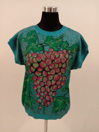 Very nice t shirt fruity graphic vintage triblend knit tee. Nice fruit print. Roberta made in italy Material 50 cotton, 25 viscose 25 acrylic Size on tag mention 44i,38d,42f,38ch,10usa Measurement: Armpit to armpit 21- + Inches Length 24-+ Inches Pls see pics thoroughly. Item in good gently used condition. 8.5@9/10 No hole no stains foreseen. Pls Refer photo for details Open for nego & offer. No worries Use Fedex Express for shipping. Receiving in 4 -8 working days. Sold as is. Payment using paypal only. Enjoy your fashion style. Thanks