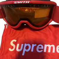 🎈Bold red Supreme Ski Goggles. Features tinted lenses. • Supreme x Smith Cariboo OTG • Red colorway • Clean lens, no cracks • Comes with Supreme storage pouch • Adjustable strap • Always stored with care Authentic Supreme goggles from the Smith collab. In great condition with no signs of wear. Lens is clean, strap still firm, and foam padding is in excellent shape. Comes with the original red Supreme microfiber bag. Perfect for skiing, snowboarding, or as a collectible accessory for any Supreme fan Sizing: One size (adult adjustable) 📦 Ships fast & packaged safely.