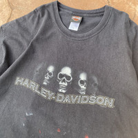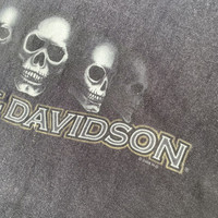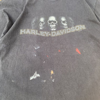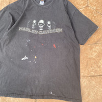 Thrashed Faded Vintage Y2K Harley Davison Skulls Rare Tee