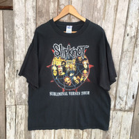 Thrashed Faded Vintage Y2K Slipknot Metal Band Rare Tshirt