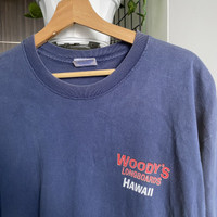 Thrashed Faded Vintage Y2K Woody’s Longboards Hawaii tee