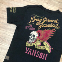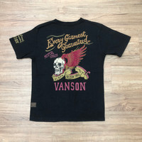 Vanson Leathers - Vanson Cotton Skull Wing Embroidered T Shirt Motorcycle