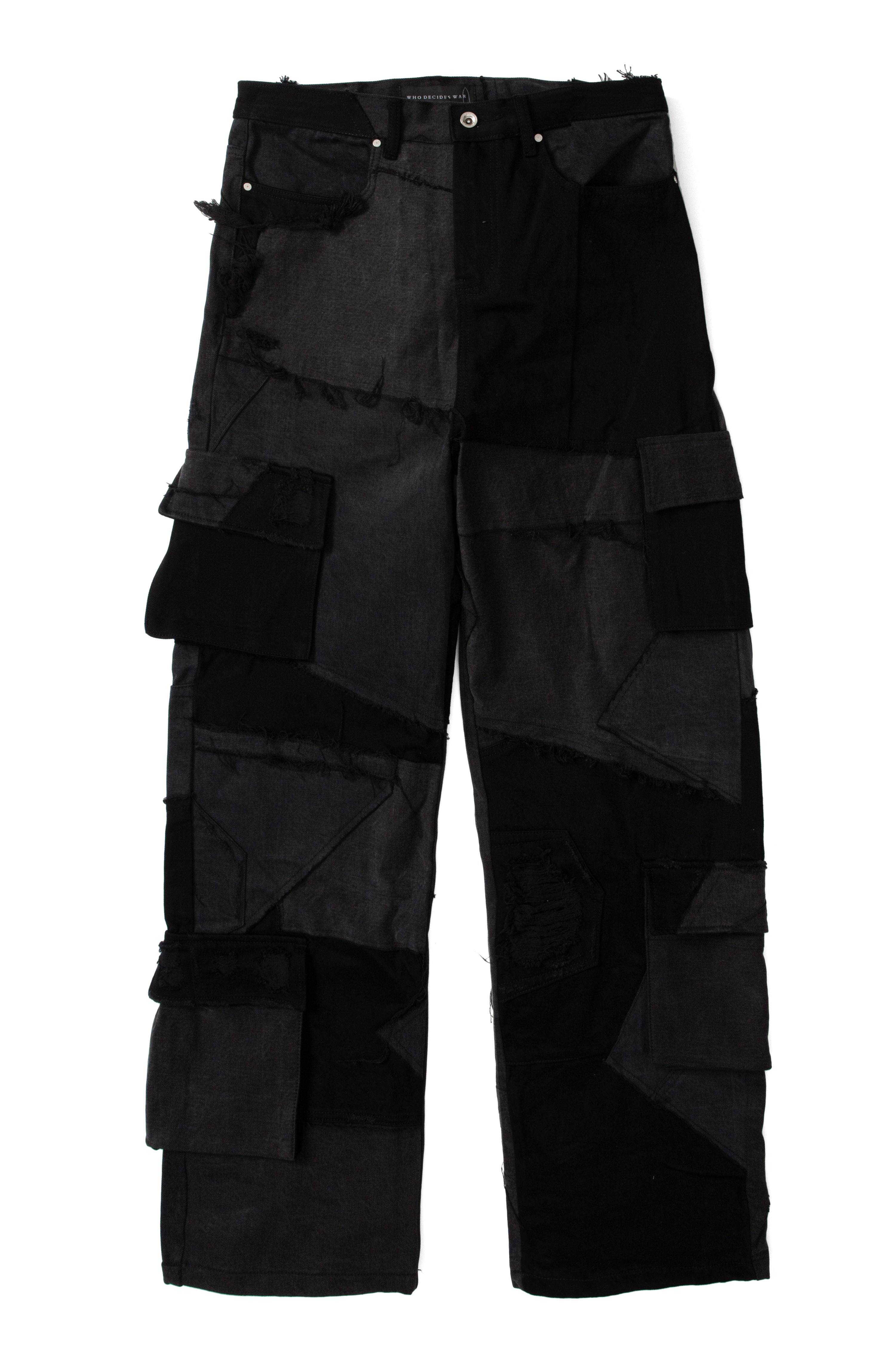 The Destroyed Paneled Cargos are comprised of 100% cotton and feature a straight fit. The pants inseam sit at 35.5 inches and are embellished with repaired distressing throughout. Following your normal size is recommended. Processing takes 1-2 days, shipping in the US 3-4 days, internationally 7-10 days.