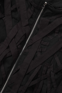 The Engulfed Bomber is 100% cotton. Features an Intricately Intertwined woven denim strap pattern. Slightly cropped, with a boxy fit. Follow your normal size.