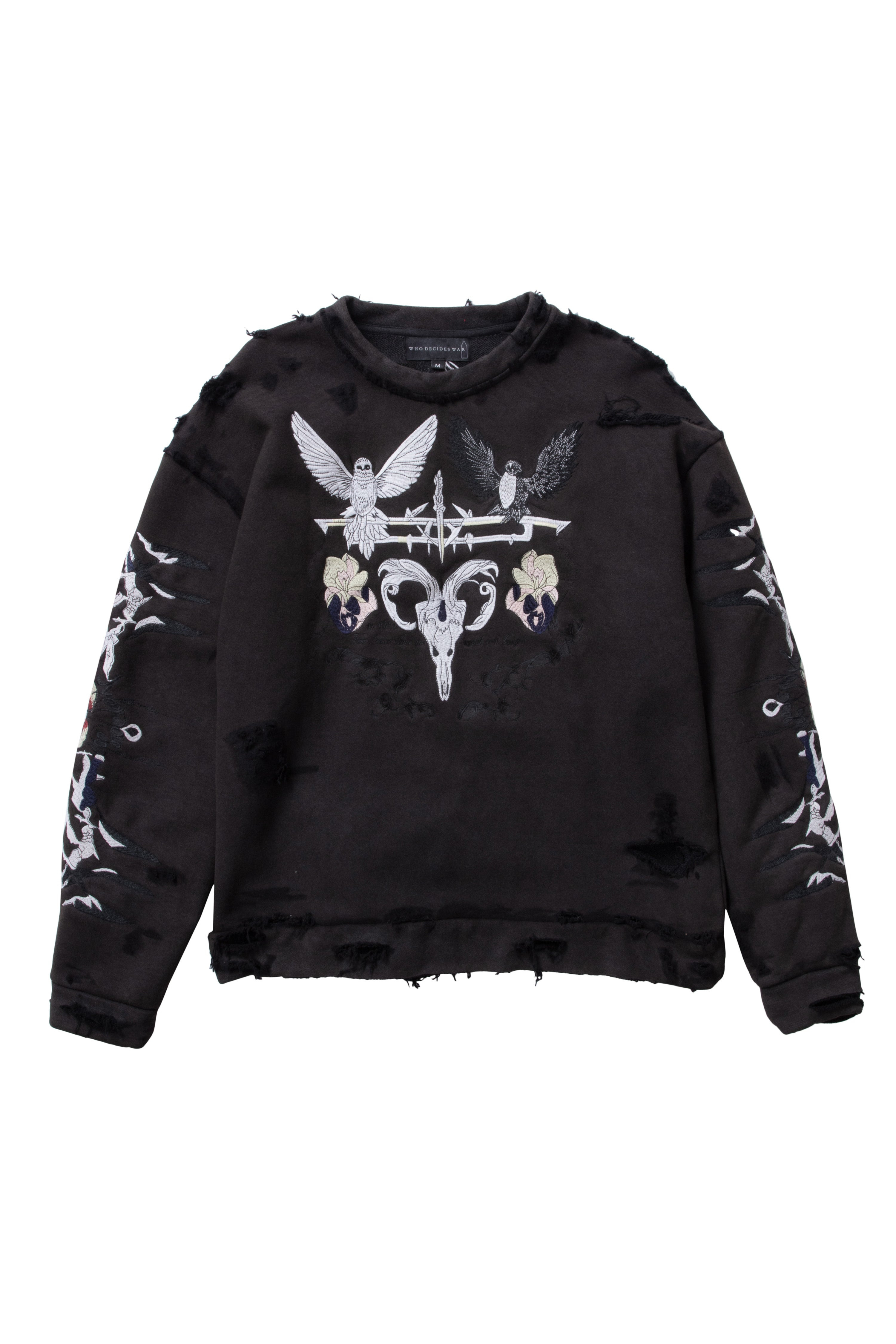 The Epitome Pullover is constructed from 100% cotton, this crewneck features original artwork applied by screen print and embroidery. With intentional distressing and design placement this adds a distinctive touch. Featuring a boxy and slightly cropped fit, following your normal size is recommended. Processing takes 1-2 days, shipping in the US 3-4 days, internationally 7-10 days.