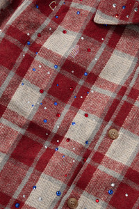 The Glory Flannel is made of a wool blend with rhinestone embellishments, fits slightly oversized. Size down for your normal size. Processing takes 1-2 days, shipping in the US 3-4 days, internationally 7-10 days.