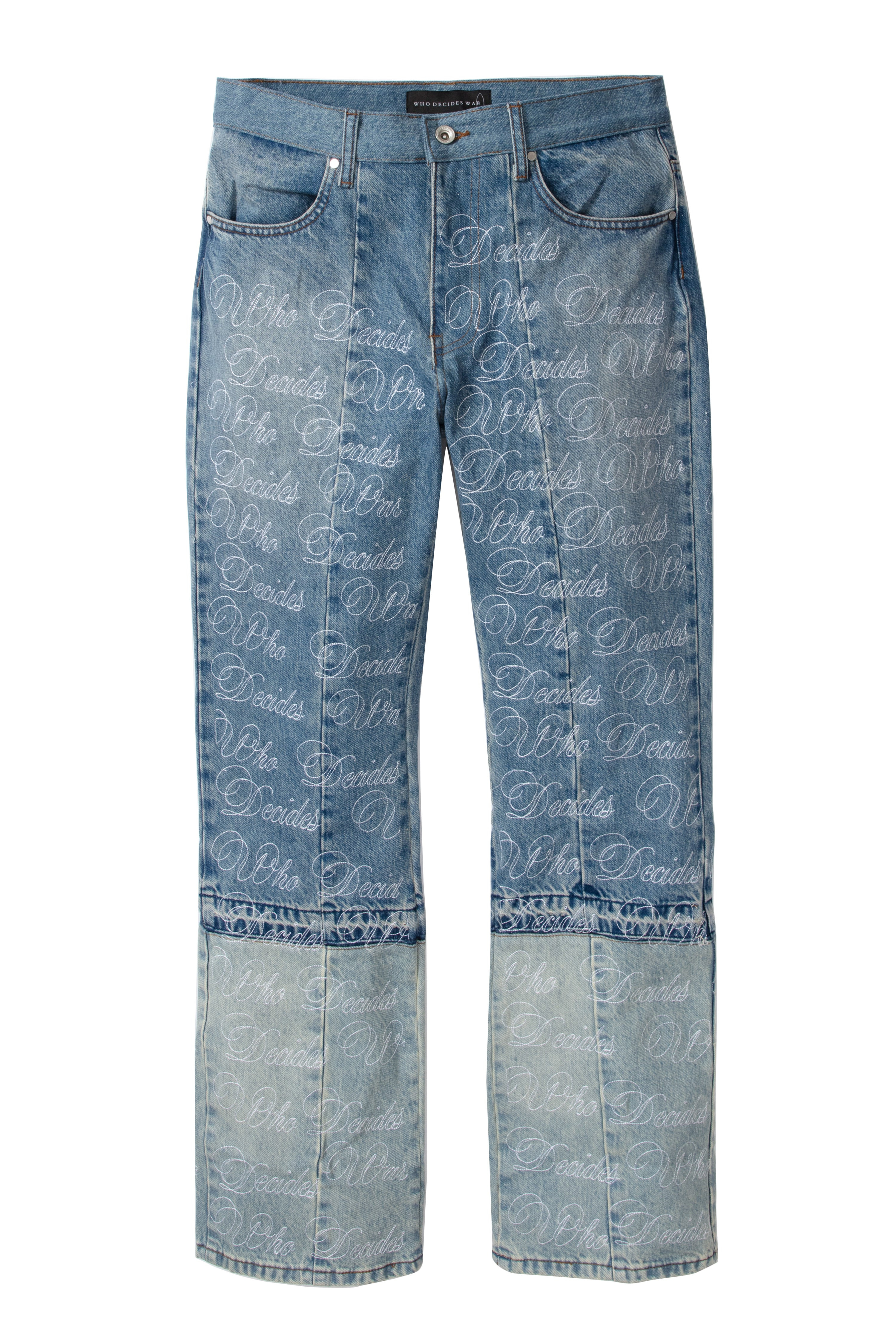 The Maratre Denim are comprised of 100% cotton and feature a slim straight fit. The pants inseam sit at 35.5 inches and are embellished with our signature who decides war embroidery DTG and a permanent crease. Following your normal size is recommended. Processing takes 1-2 days, shipping in the US 3-4 days, internationally 7-10 days.