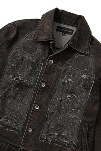 This denim jacket is sure to become a part of your style. Made with 100% cotton, this jacket features our traditional fit with original stained-glass embroidered patchwork throughout. The jacket has been washed to give it a vintage look and feel. If you are trying to decide on a size, you can follow your normal size for a standard fit. Processing takes 1-2 days, shipping in the US 3-4 days, internationally 7-10 days.