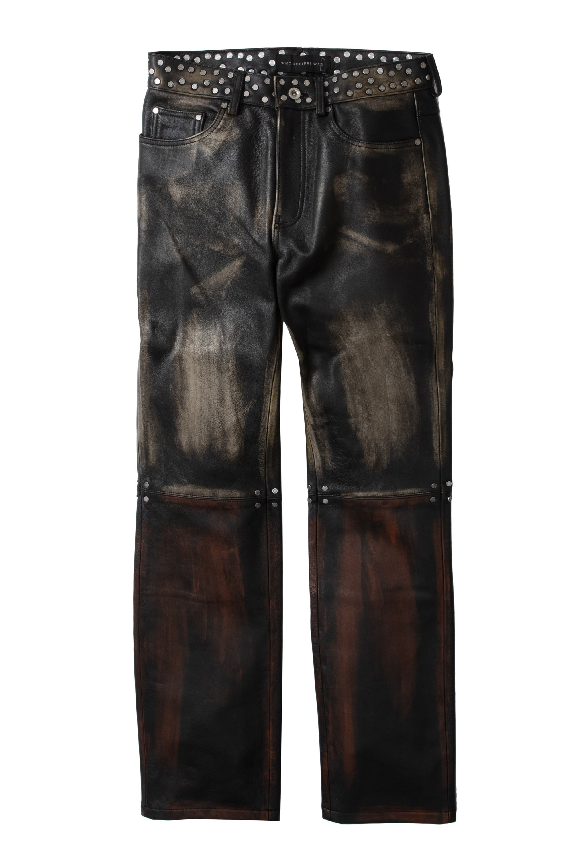 This Ombre Studded Leather Pant is sure to become a part of your style. Made with 100% cowhide, these pants feature a slim straight fit with our new rub off leather technique. The two tone leather effect is present all throughout the garment. The branded rivets studded all throughout the waistband and jean buttons accents complete the look. Following your normal size is recommended. Processing takes 1-2 days, shipping in the US 3-4 days, internationally 7-10 days.