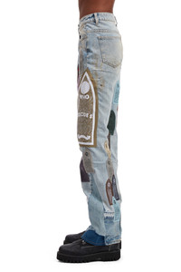 The Pastel Denim are comprised of 100% cotton and feature a flared cut. The pants feature an inseam of 35.5 inches and are embellished with embroidered leather patches, throughout. Follow your normal size. Processing takes 1-2 days, shipping in the US 3-4 days, internationally 7-10 days.