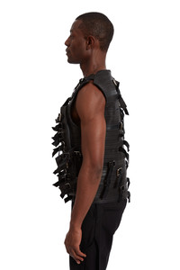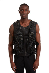 The Ultra Belt Vest is constructed of 100% cowhide and introduces our fully covered belt design, throughout the garment. The vest features a zipper closure, adjustable straps and cut off sleeves. Following your normal size is recommended. Processing takes 1-2 days, shipping in the US 3-4 days, internationally 7-10 days.