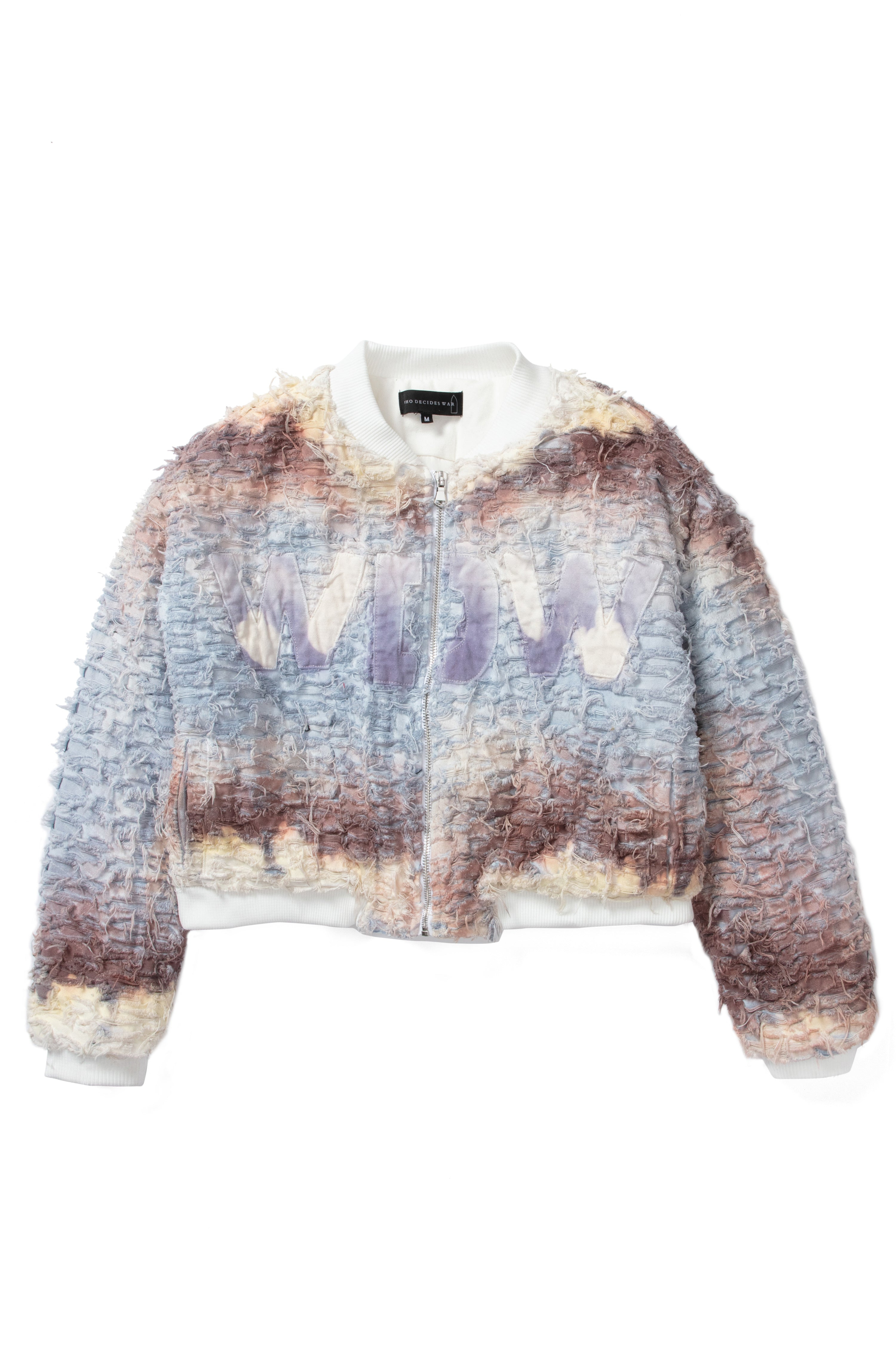 The WDW Husk Bomber is 100% cotton and features a traditional fit with a boxy, slightly cropped fit. Varsity letter embroidery, ombre dye technique. d istressing throughout. Follow your normal size. Processing takes 1-2 days, shipping in the US 3-4 days, internationally 7-10 days.