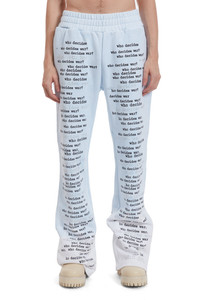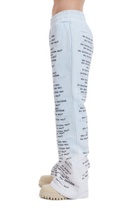 The WDW Scripture Sweatpants are comprised of 100% cotton and feature a straight fit. The pants feature an inseam of 35.5 inches and are embellished with embroidered patches throughout. Follow your normal size. Processing takes 1-2 days, shipping in the US 3-4 days, internationally 7-10 days.
