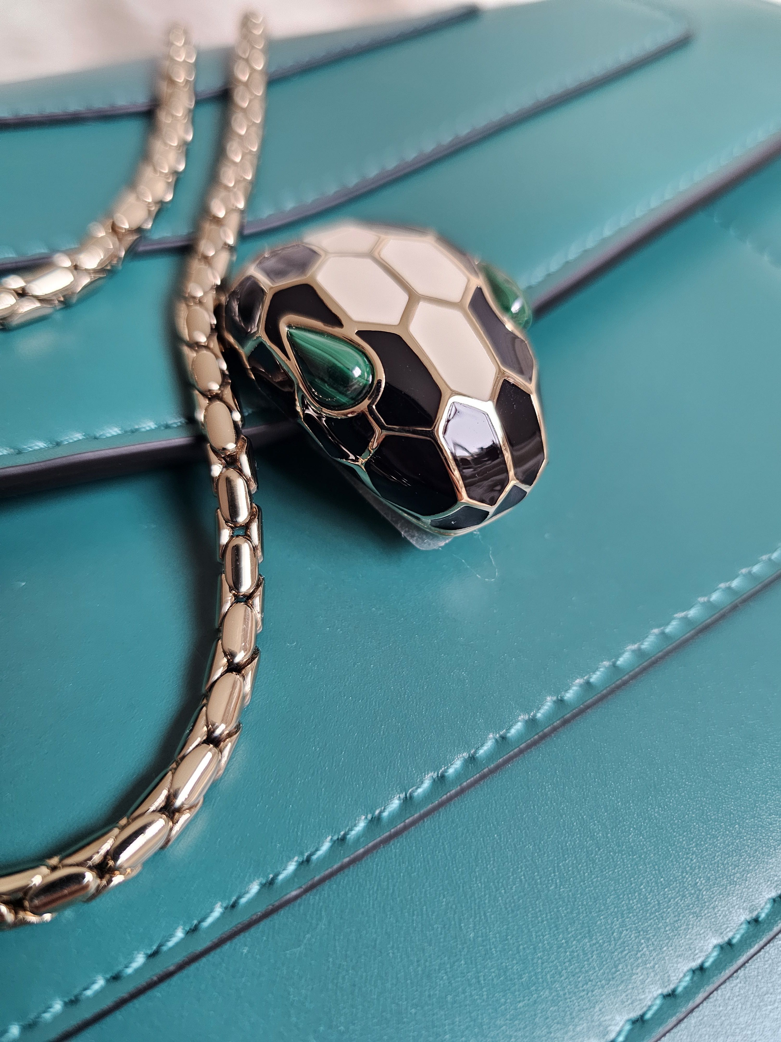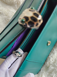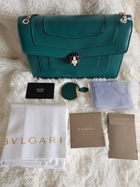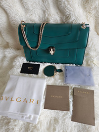 → Prix boutique : 4 200€ | Etat neuf jamais utilisé Je vous propose ce magnifique sac Serpenti Forever de la maison Bulgari, en cuir de veau vert Émeraude. Ce modèle moyen est à la fois élégant et polyvalent, parfait pour un usage quotidien.Le sac est doté d'une chaîne en forme de serpent et d'un fermoir emblématique Serpenti, inspiré des bijoux Serpenti des années 60. Il se porte aussi bien à l'épaule qu'à la main, grâce à sa chaîne en métal doré, et comprend plusieurs compartiments pratiques pour organiser vos essentiels. Caractéristiques :Deux compartiments spacieuxPoche plaquée à l'avant et à l'arrièrePoche zippée de séparationPoche ouverte à l'intérieurMiroir assortiLogo Bvlgari en métal au dosDimensions : Largeur: 25 cmHauteur : 17 cm Profondeur: 8 cmAccessoires inclus :Miroir Bulgari assortiSac de protection pluieDustbag BvlgariCarte d'authentificationMade in ItalyCe sac Serpenti allie parfaitement fonctionnalité et raffinement, faisant de lui l'accessoire idéal pour vos tenues quotidiennes ou comme cadeau de luxe pour les fêtes de fin d'année.