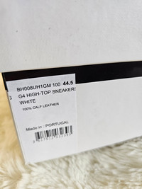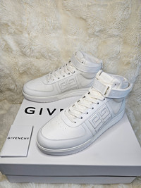 Prix boutique: 950€ État : Neuf, jamais porté Découvrez les sublimes baskets montantes G4 de Givenchy, en cuir de veau blanc, pour un look résolument moderne et élégant. Caractéristiques : 100% cuir de veau d'une qualité exceptionnelle Couleur blanche intemporelle avec détails iconiques Givenchy Fermeture montante pour un maintien optimal Détails du logo 4G sur le côté, signature de la maison Fabriqué au Portugal Inclus: Boîte d'origine Givenchy, housses de protection. Ces baskets allient confort et style, parfaites pour compléter votre collection de luxe.