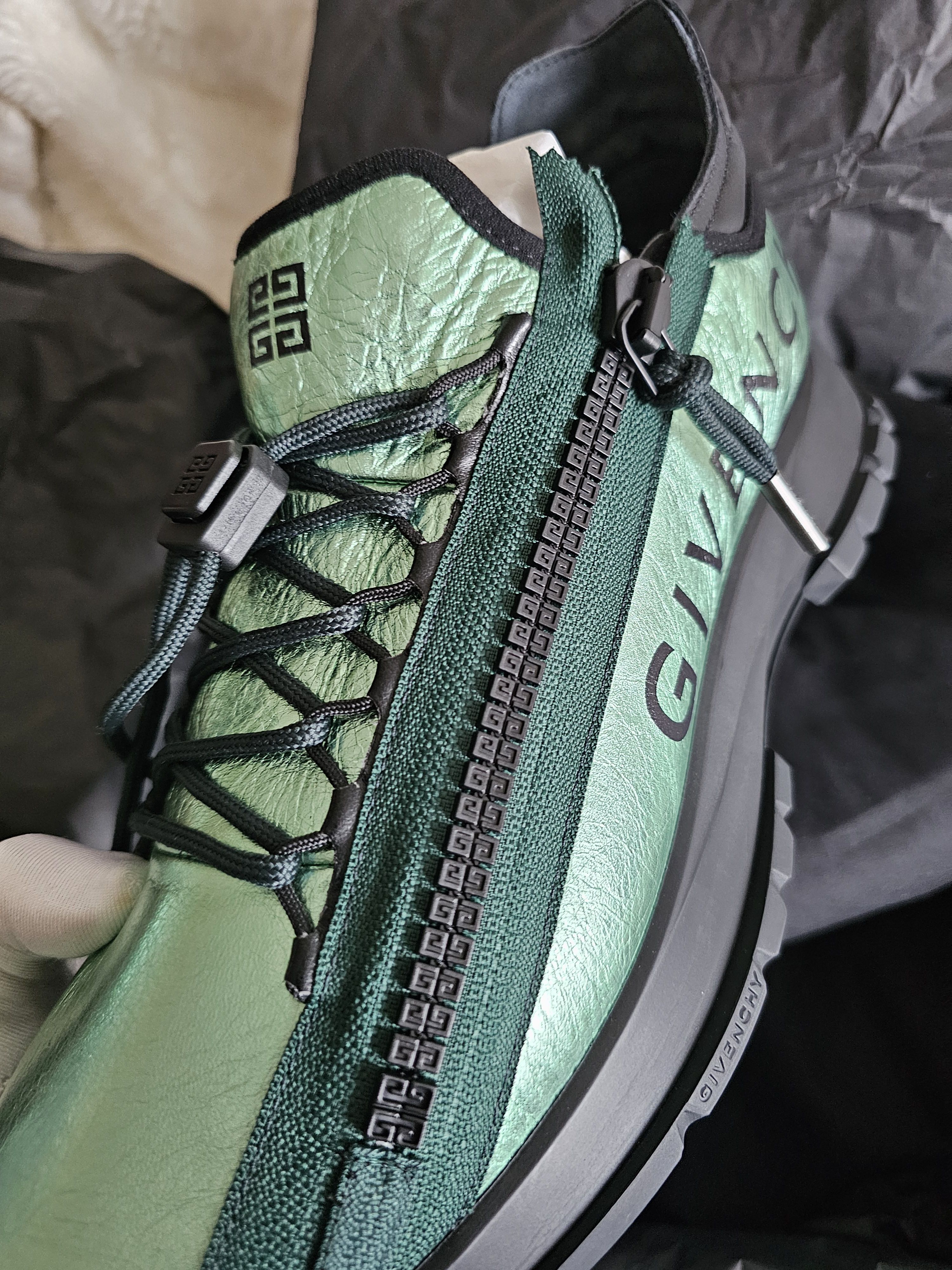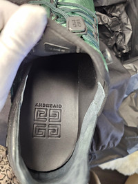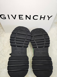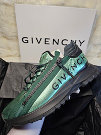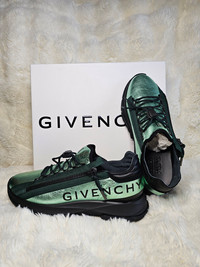 Prix boutique: 950€ + État : Neuf, jamais porté → Suivez-moi pour découvrir plus de produits de luxe ! → Dispo aussi en 42 (voir mon autre annonce) Découvrez les sneakers Spectre Runner de Givenchy, modèle exclusif en cuir de veau avec une finition métallisée vert et argent, qui incarne le parfait mélange entre style et sophistication. Caractéristiques : Couleur : Vert métallisé avec détails argentés Matière : 100% cuir de veau de qualité supérieure Fermeture : Lacets ajustables avec le logo Givenchy sur le devant Semelle : Épaisse, robuste, offrant un confort optimal Détails : Logo Givenchy noir imprimé sur le côté et le dessus Accessoires inclus : Dustbag Givenchy Boîte d'origine Givenchy Ces sneakers sont une pièce unique qui ajoutent une touche de luxe à n'importe quelle tenue, parfait pour les amateurs de mode et de produits haut de gamme.