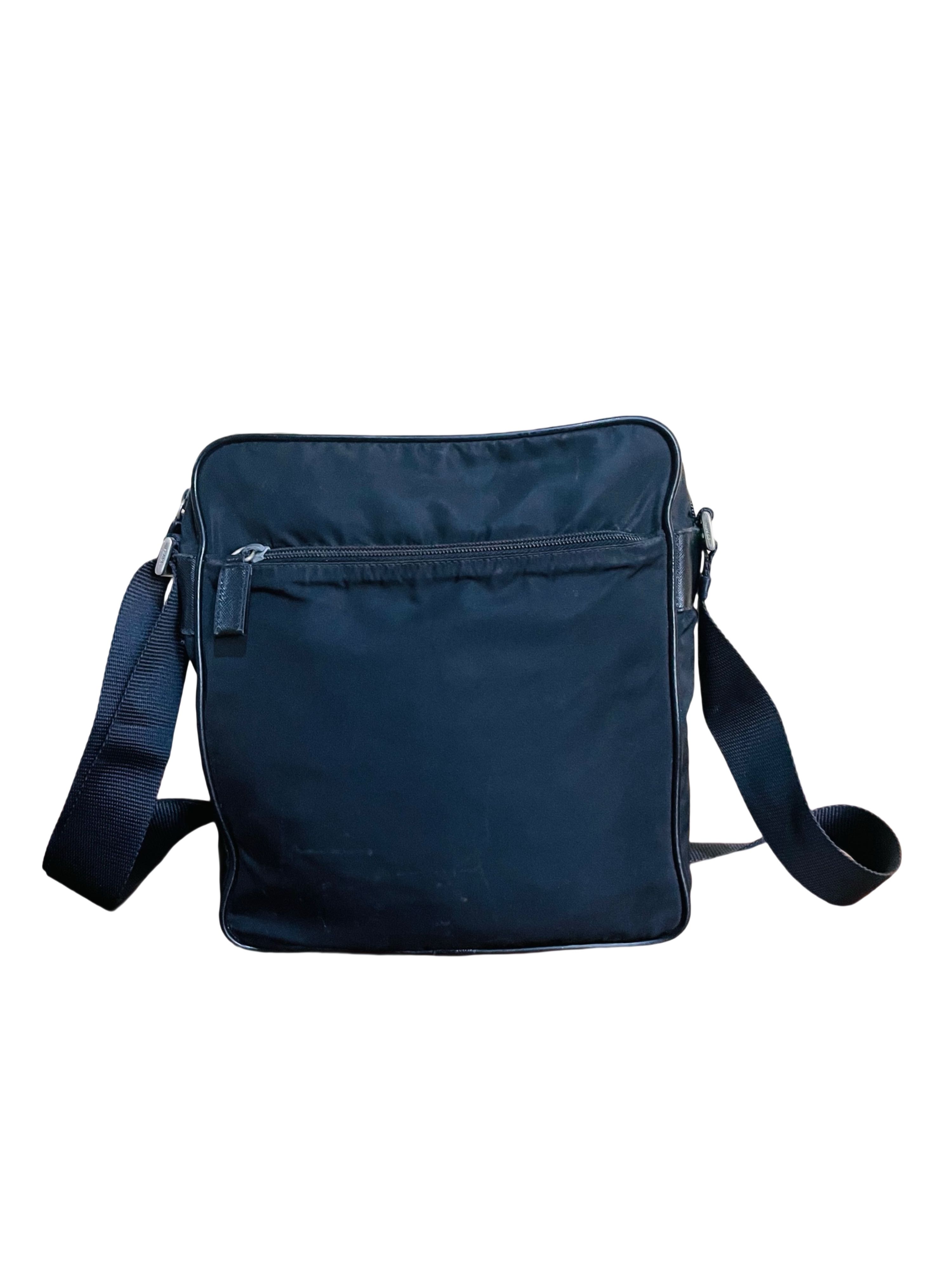 Prada Tessuto Triangle Logo Plate Shoulder Bag Black