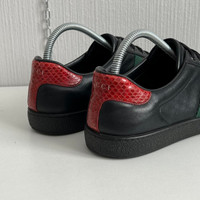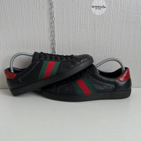 Gucci Ace Leather Black Mens Shoes Condition: gently used with sings of use inside on heel Size: 43.5 Please view all photos carefully for the most accurate representation and to avoid any misunderstandings. Stored in a clean, odor-free, and pet-free environment.