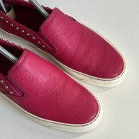 Gucci Hilary Lux GG Leather Slip On Sneakers Womens Shoes Condition: gently used, few studs are missing Size: 36.5 Art: 385758 Please view all photos to avoid misunderstandings. If you need measurements, or more photos please contact me. Offers and any questions are very welcomed! Odor and pet free environment. Details Online since:2024-09-26 Categories: women Category: Shoes Sub-category: Flats Designer: Gucci Condition: 0 Material: Leather Colour: Pink Size: 36.5 EU Location: empty Reference: 47958802