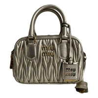 Miu Miu Arcadie Matelassé Nappa Leather Bag in Purite Condition: gently used only light signs of use on corner Size: 13x19x6cm Please view all photos to avoid misunderstandings. Odor and pet free environment. Details Online since:2025-01-08 Categories: women Category: Bags Sub-category: Handbags Designer: Miu Miu Condition: 0 Material: Leather Colour: Gold Width 7.5 in, Height 5.1 in, Depth 1.2 in Location: empty Reference: 51247953 Measurements Width: 7.5in Height: 5.1in Depth: 1.2in