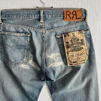 RRL Ralph Lauren Selvedge Distressed Repaired Japan Woven Denim Pants Condition: New with tags Size: 30x32 (waist - 42cm, full length - 107cm) Please view all photos carefully for the most accurate representation and to avoid any misunderstandings. Stored in a clean, odor-free, and pet-free environment.