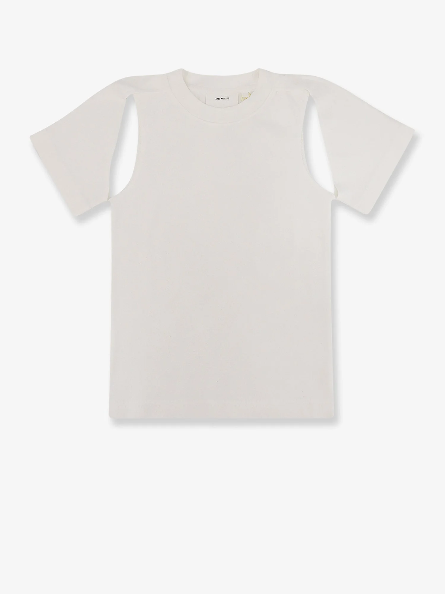 Brand: AXEL ARIGATO Product reference: A3418001 Color reference: WHITE Color: White Gender: Woman Category: T-Shirts and Top Made in: PORTOGALLO Info: Crew neck Short sleeves with cut-out detail Ribbed trim Regular fit 97% cotton, 3% elastane SKU: A3418001WHITE Why Shop With Us · 100% Authenticity Guaranteed · Brand-New, Unworn Items Only · Original Retail Packaging Included · Fast, Reliable Shipping · Excellent Customer Service