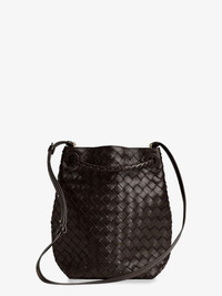 Bottega Veneta Andiamo Bucket Leather Crossbody Bag With Intrecciato Pattern