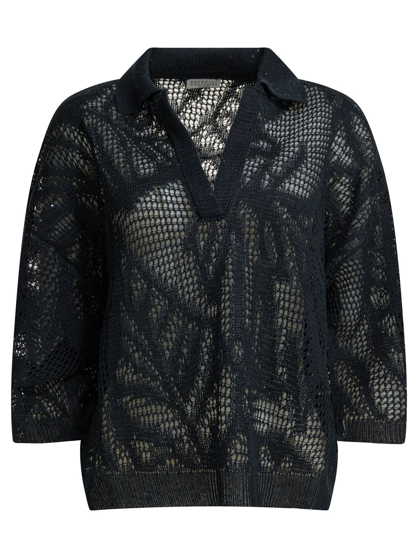 V-neck open-knit sweater