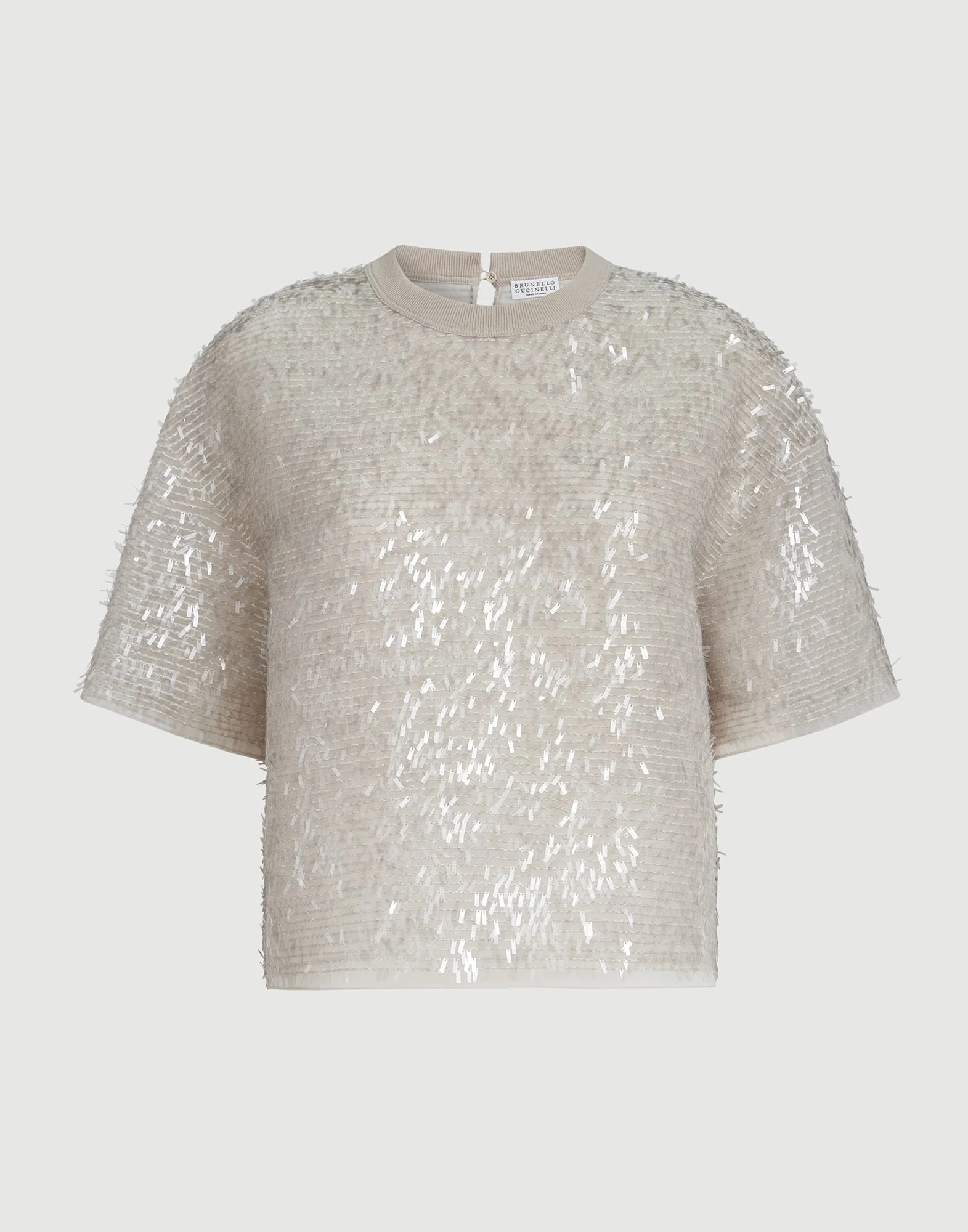 Brunello Cucinelli Short Sleeves T-shirt In Silk Crispy
