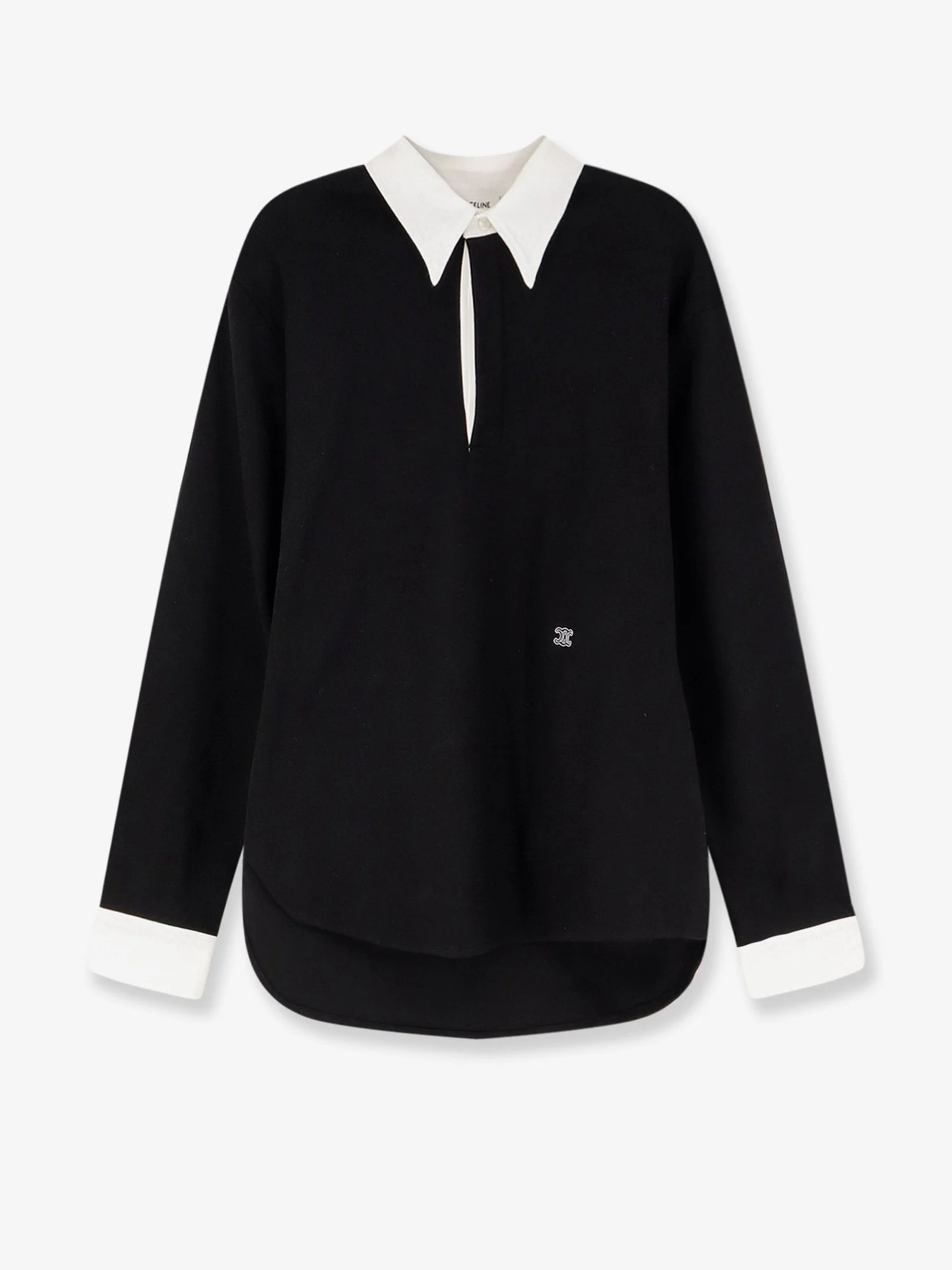 Brand: CELINE Product reference: RX0D30Z65 Color reference: 38AW Color: Black Gender: Man Category: Sweatshirts Made in: ITALIA Info: Three-button closure Contrasting pointed collar Long sleeves with contrasting cuffs and button Triomphe embroidery Made in Italy 98% cotton, 2% elastane SKU: RX0D30Z6538AW Why Shop With Us · 100% Authenticity Guaranteed · Brand-New, Unworn Items Only · Original Retail Packaging Included · Fast, Reliable Shipping · Excellent Customer Service