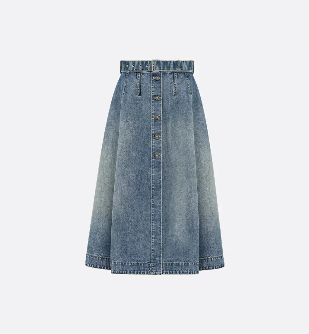 Dior Belted Midi Skirt In Denim