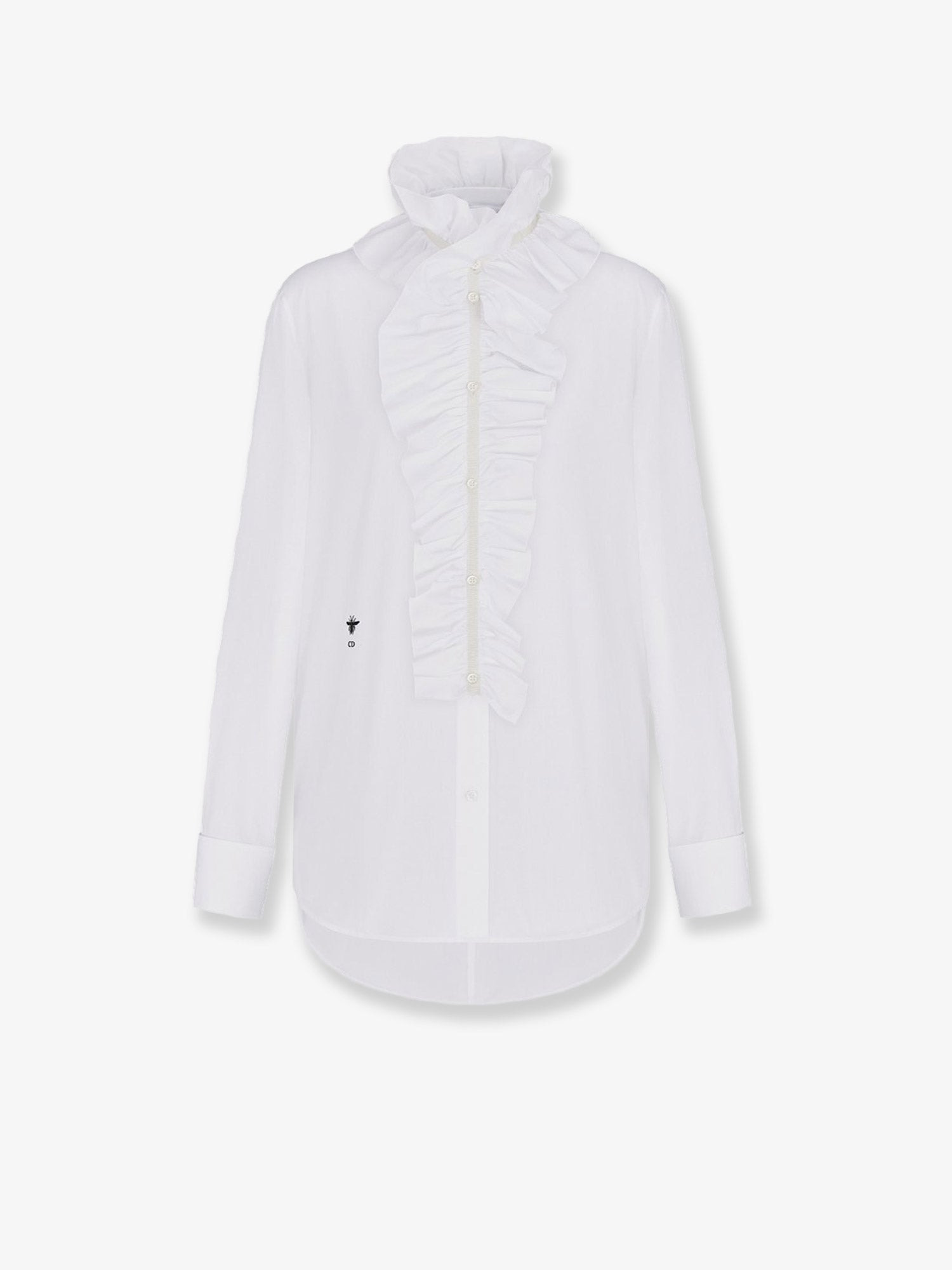 Brand: DIOR Product reference: 551B14A3356 Color reference: 100 Color: White Gender: Woman Category: Shirts Made in: ITALIA Info: Embroidered bee symbol and CD signature Mother-of-pearl button closure with Christian Dior Paris signature Removable ruffle Long sleeves with double cuffs Made in Italy 100% cotton SKU: 551B14A3356100 Why Shop With Us · 100% Authenticity Guaranteed · Brand-New, Unworn Items Only · Original Retail Packaging Included · Fast, Reliable Shipping · Excellent Customer Service