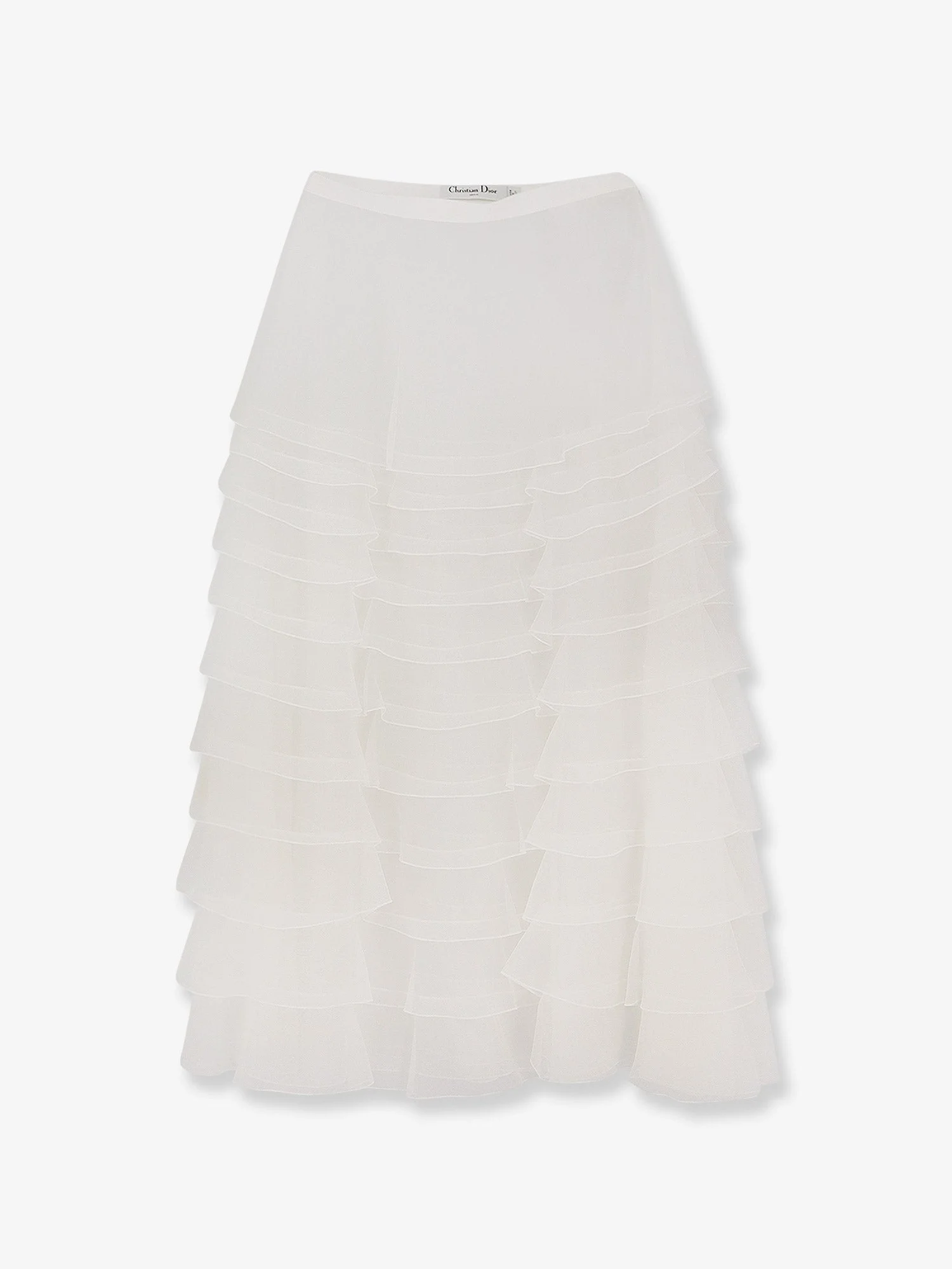 Brand: DIOR Product reference: 611J16A6605 Color reference: 0200 Color: White Gender: Woman Category: Skirts Made in: ITALIA Info: Side zip closure Grosgrain ribbon Flounced Internal silk skirt Made in Italy 100% silk SKU: 611J16A66050200 Why Shop With Us · 100% Authenticity Guaranteed · Brand-New, Unworn Items Only · Original Retail Packaging Included · Fast, Reliable Shipping · Excellent Customer Service