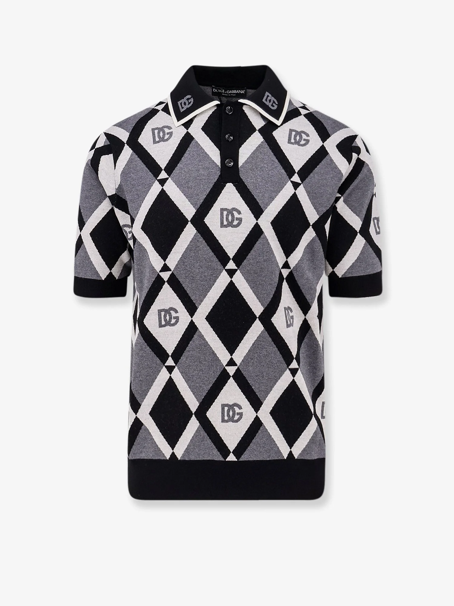 Dolce & Gabbana Virgin Wool Polo Shirt With Geometric Print