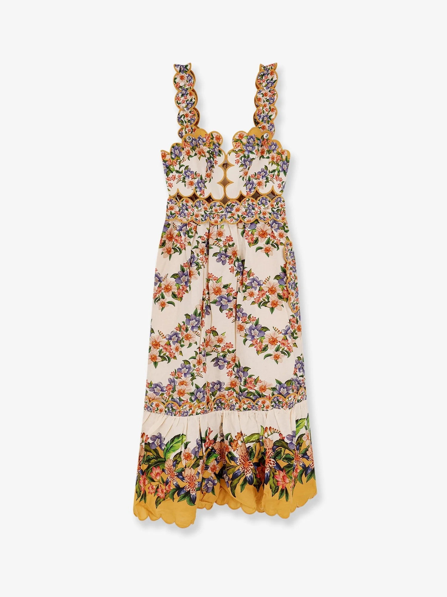 Sand Hilo floral scalloped midi dress