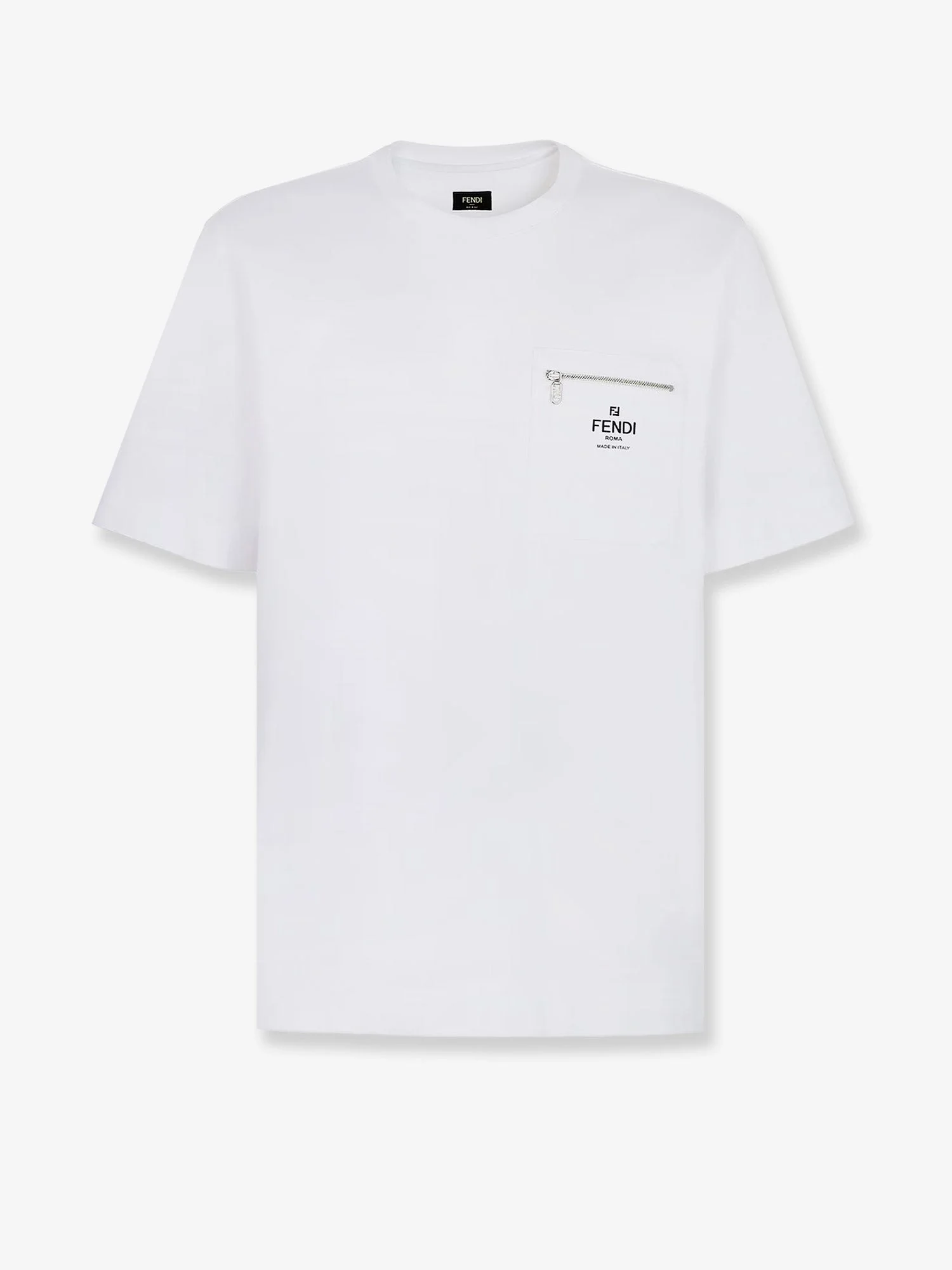 Brand: FENDI Product reference: FY0936 Color reference: ARYRF0QA0 Color: White Gender: Man Category: T-Shirts and Top Made in: ITALIA Info: Ribbed crew-neck Short sleeves Zippered breast pocket with Fendi O'Lock slider Fendi Roma print Regular fit Made in Italy 100% cotton SKU: FY0936ARYRF0QA0 Why Shop With Us · 100% Authenticity Guaranteed · Brand-New, Unworn Items Only · Original Retail Packaging Included · Fast, Reliable Shipping · Excellent Customer Service