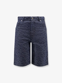 Fendi Denim Bermuda Shorts With All-Over Ff Logo