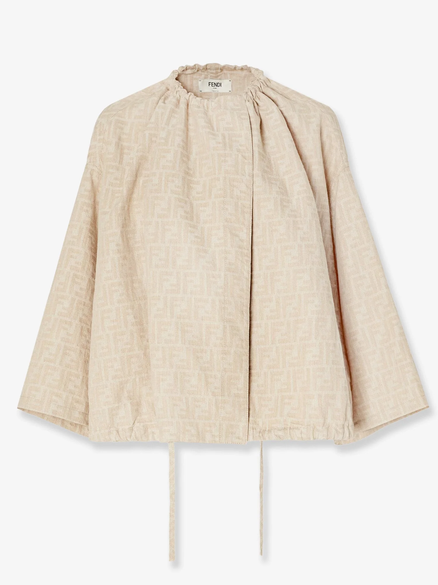 Brand: FENDI Product reference: FLF825 Color reference: ASMFF1SAZ Color: Beige Gender: Woman Category: Jackets Made in: ITALIA Info: Cotton and linen drawstring closure Crew-neck with adjustable drawstring Wide short sleeve Bottom with adjustable drawstring Made in Italy 74% cotton 26% linen SKU: FLF825ASMFF1SAZ Why Shop With Us · 100% Authenticity Guaranteed · Brand-New, Unworn Items Only · Original Retail Packaging Included · Fast, Reliable Shipping · Excellent Customer Service