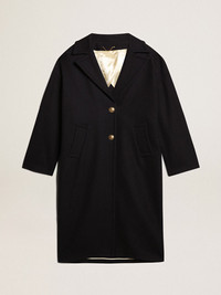 Women's single-breasted cocoon coat in dark blue wool with gold button
