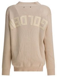 Women’s beige cardigan with 'Golden' lettering on the back