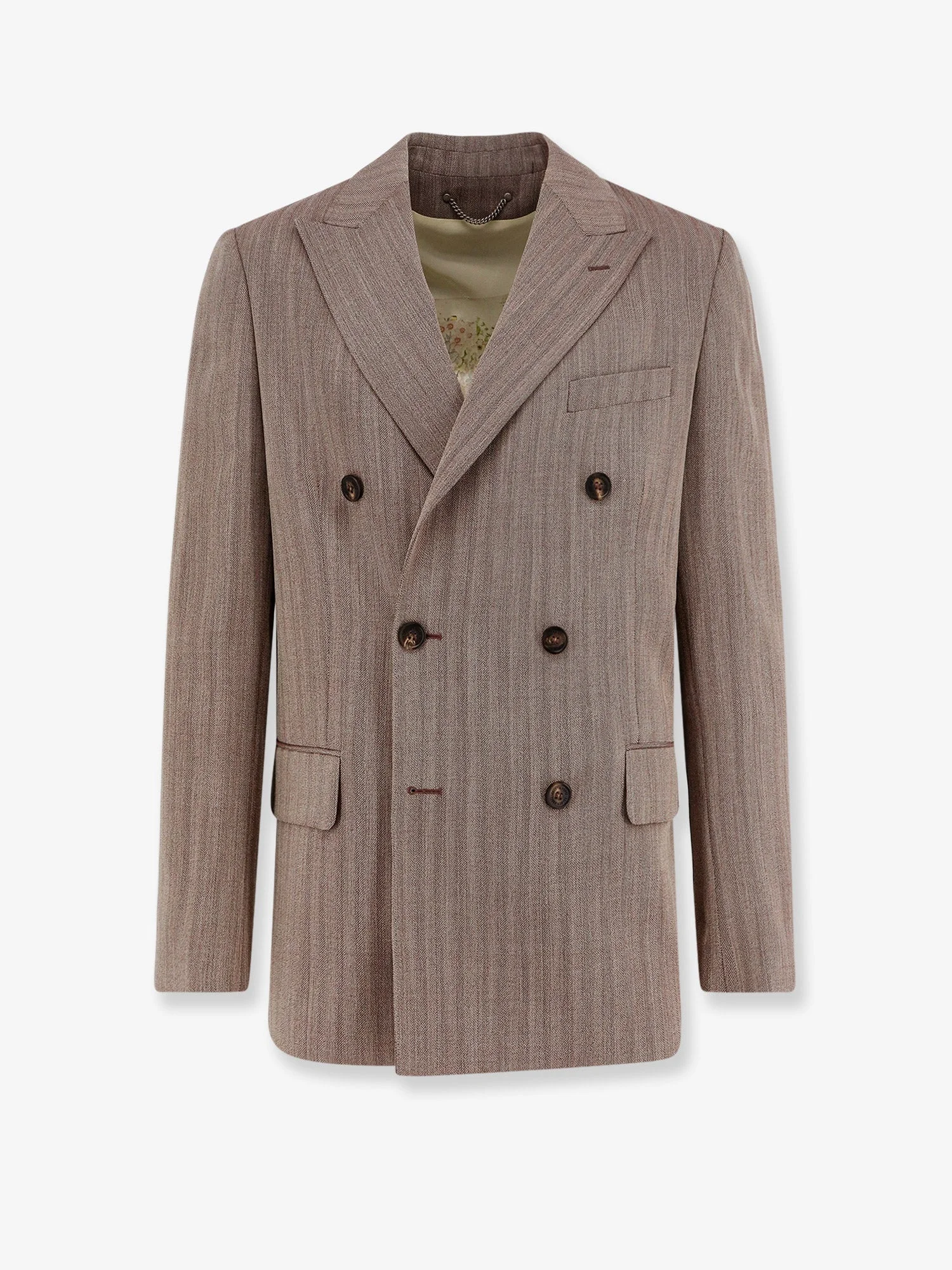 Men's beige chevron wool blend double-breasted blazer