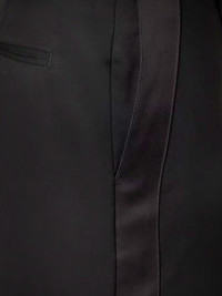 Men's pants in black cool wool with satin side stripe