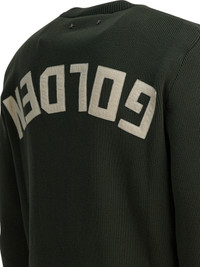 Men's military green crew neck sweater with 'Golden' lettering on the back