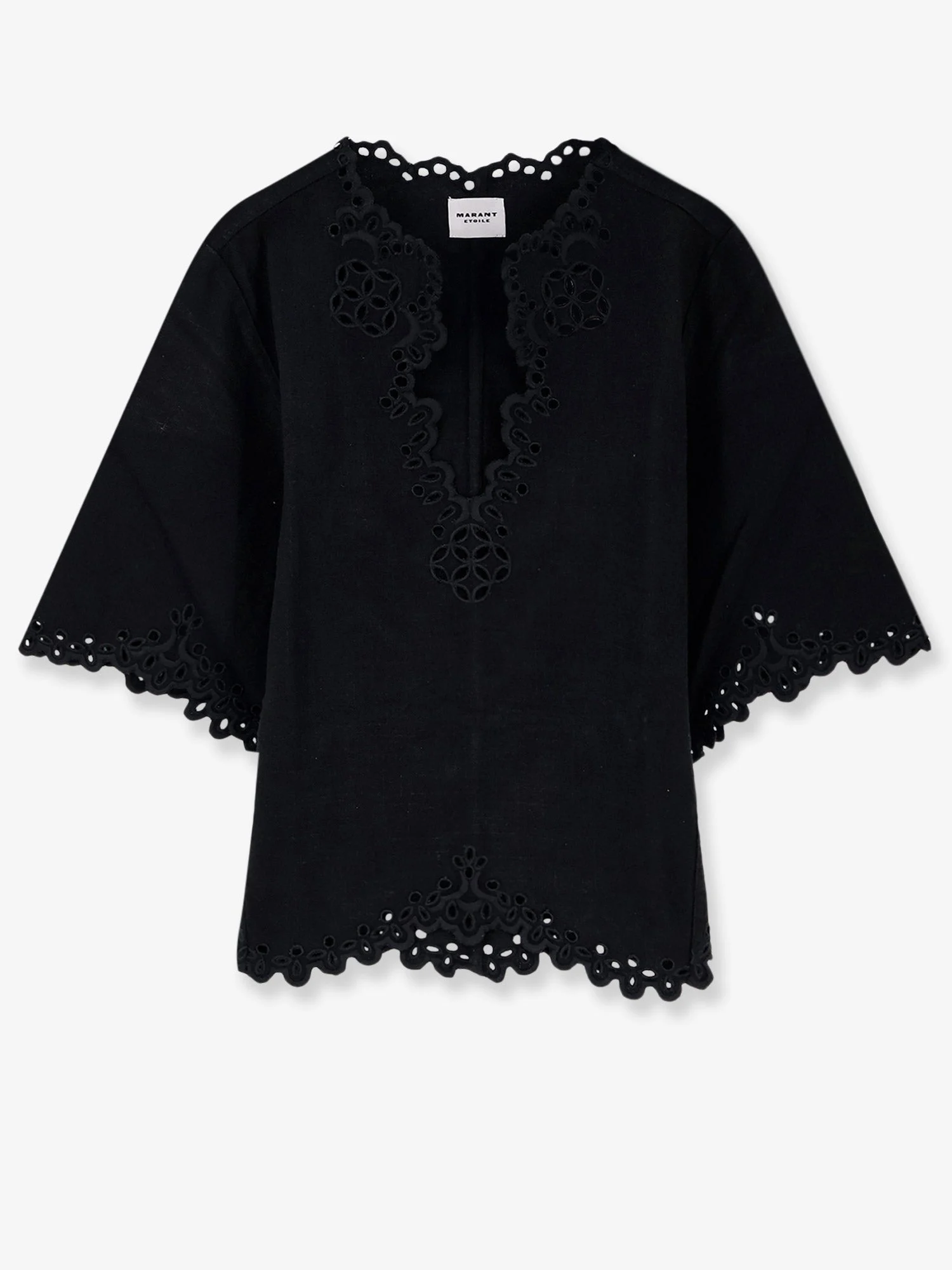 Brand: MARANT ETOILE Product reference: HT0586FB Color reference: D1J04E02FK Color: Black Gender: Woman Category: T-Shirts and Top Made in: INDIA Size Info: FR sizing. Info: V-neck Short flared sleeves Perforated profiles 100% Cotton SKU: HT0586FBD1J04E02FK Why Shop With Us · 100% Authenticity Guaranteed · Brand-New, Unworn Items Only · Original Retail Packaging Included · Fast, Reliable Shipping · Excellent Customer Service
