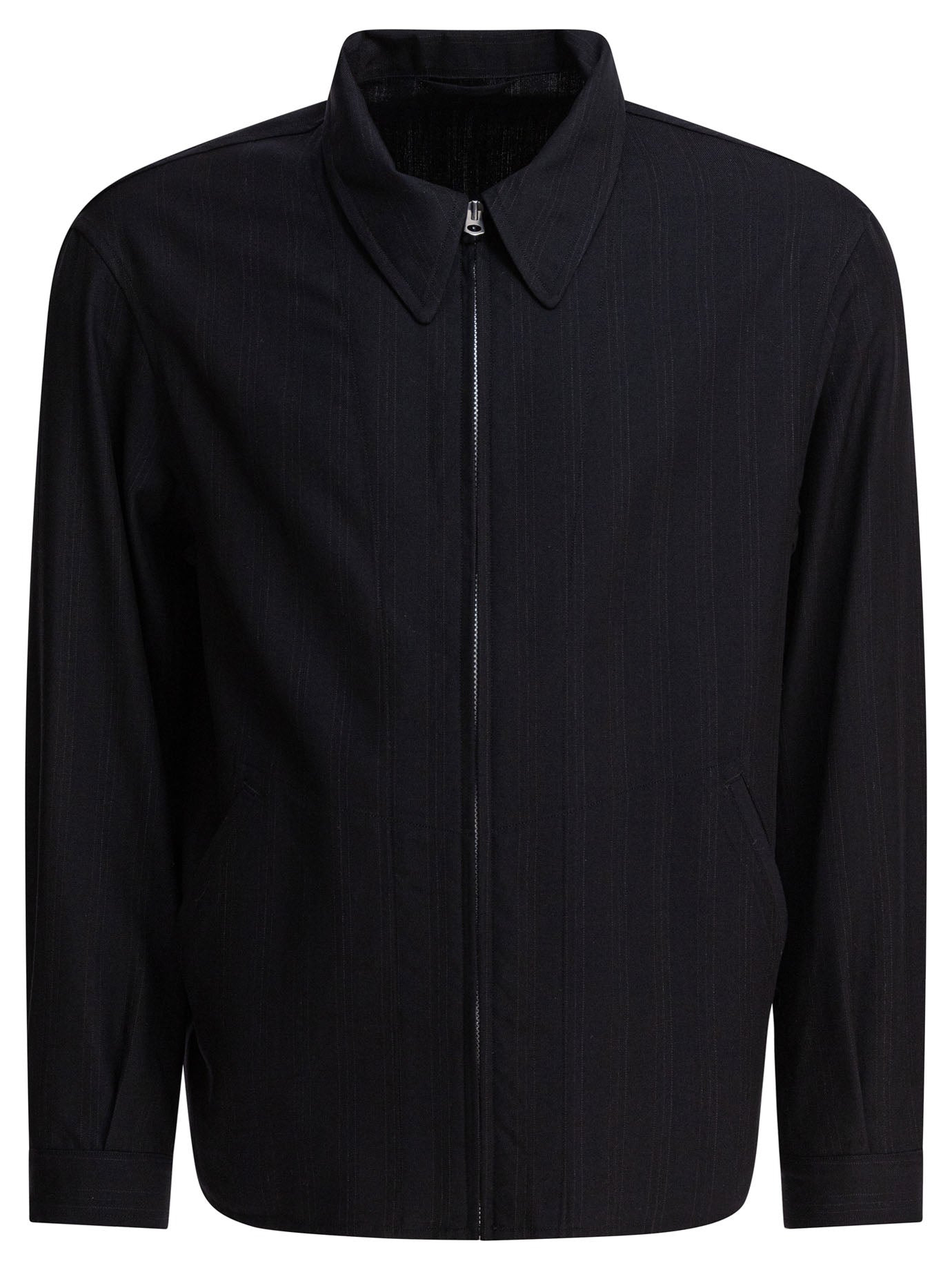 pinstripe-pattern zip-front jacket