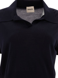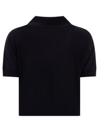 Morgane cropped wool-blend polo top Navy