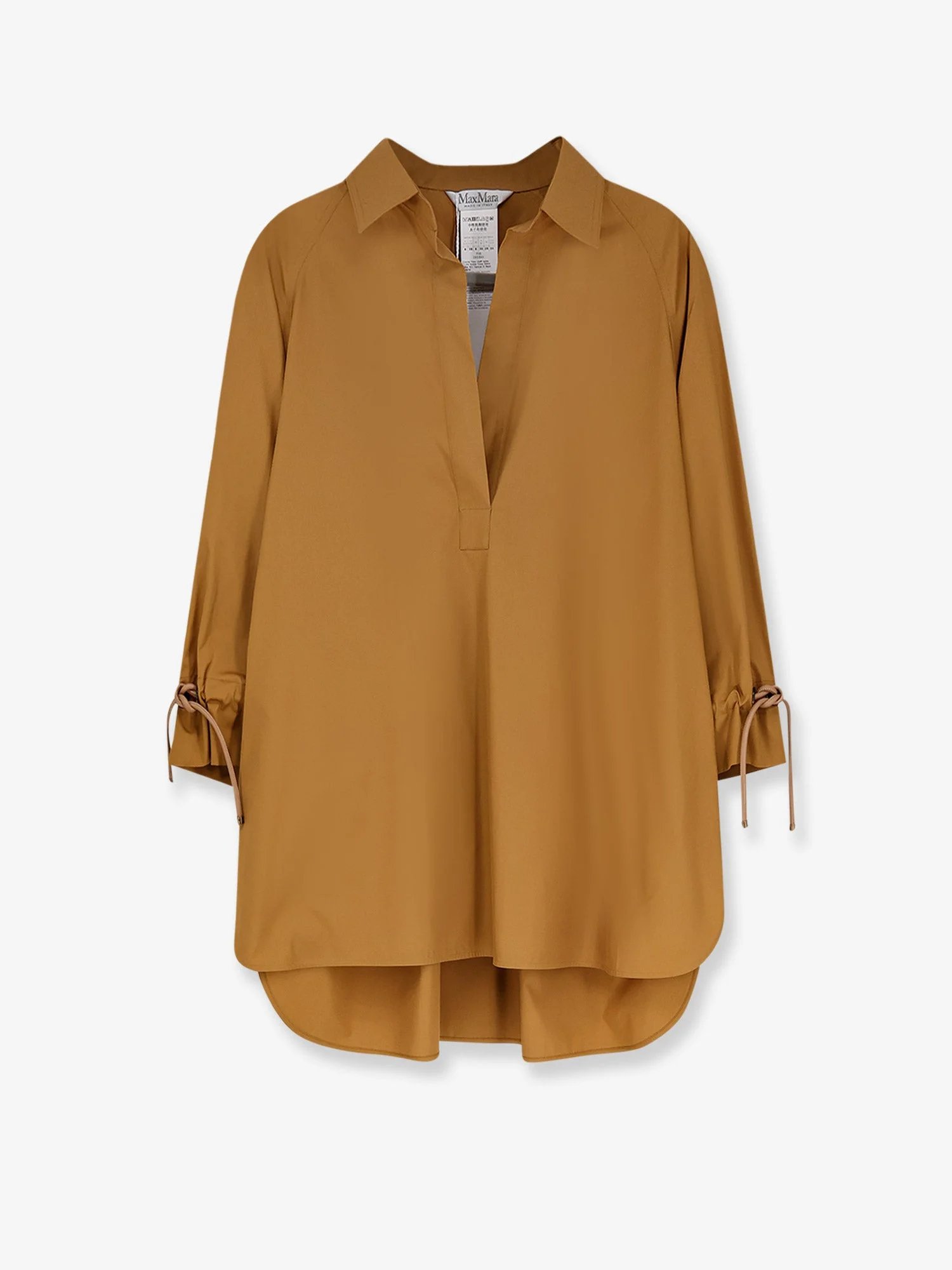 Brand: MAX MARA Product reference: 2611191062600 Color reference: 014 Color: Brown Gender: Woman Category: Shirts Made in: ITALIA Size Info: IT sizing. Info: No Closure Pointed collar Leather drawstring sleeves Rounded asymmetrical bottom Made in Italy 100% cotton SKU: 2611191062600014 Why Shop With Us · 100% Authenticity Guaranteed · Brand-New, Unworn Items Only · Original Retail Packaging Included · Fast, Reliable Shipping · Excellent Customer Service